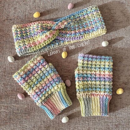 The headband is worked flat with any DK yarn and then sewn together to form the stitch. Use the correct hook for your yarn and measure your head and your good to go. Used approximately 50g of DK yarn.