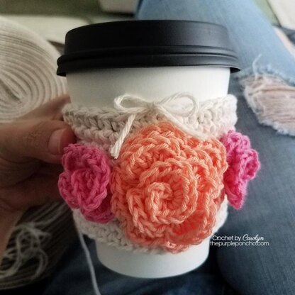 Crochet Rose Cup Cozy by Carolyn Calderon