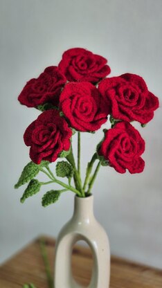 PDF pattern for crochet rose half open long stem home decor or gifting, wedding bouquet. The pattern includes step by step instruction with pictures for each crocheted part as well as for assembly of the flower. Very easy to follow pattern with over 100 pictures. There is one 20 page PDF with pictures for ease of understanding.