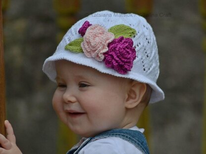 This beautiful summer panama hat is knitted with simple lace pattern and decorated with knitted roses in two contrast colors. Rose Scent Panama Hat is your summer must have. It will turn your summer outfit into a stylish girly look.