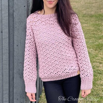 This charming pullover promises comfort and style. Crafted with worsted weight yarn using a simple one-row repeat stitch, it's perfect for confident beginners.