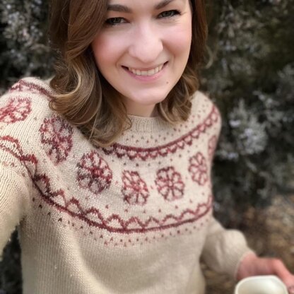 Inspired by the traditional Scandinavian cookies my Grandma Mavis used to make every year at Christmastime, the Rosettes sweater is a beautiful way to invite the comfort and nostalgia of the holidays into your handknit wardrobe. Rosettes is knit seamlessly in-the-round, from the top down. Colorwork charts are broken into five smaller steps, making it easy for you to take breaks along the way. The flower motif also works well for warmer seasons.