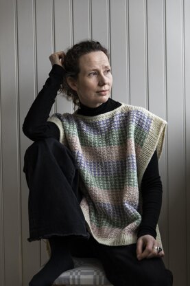 Roso has a simple yet interesting shape. The slipover’s stripe pattern uses two colours at a time, and you can create as many stripes as you want.