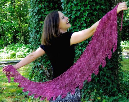The asymmetrical drape of the Rowan Berry Shawlette adds elegance for a night on the town or sophistication to an afternoon excursion. A lacy shell edging is worked at the same time as the gradually increasing body to create its unique silhouette, trimmed in picots reminiscent of berry clusters. Stitched in a silky merino yarn, the Rowan Berry can be worn as a light weight scarf or a summer shawlette.