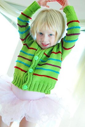 This is a great little sweater for playing outside on chilly days. Kids will love the colorful stripes! The combination of worsted and chunky weight gives the garter-stitch stripes a nice 3-D look as they are raised from the surface.