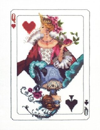 Off with their heads! Let them eat cake! “Bow down! Kiss the ring! The queens have arrived. The Queen of Hearts and the Queen of Spades will be obeyed by the entire kingdom. They can be stitched as pictured, or as two separate cards. They are soon to be joined by their sisters The Queen of Diamonds and the Queen of Clubs, all with their own unique personalities and talents for ruling.