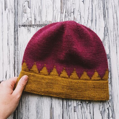 The yarn used in the original, Schachenmayr Regia Premium, has a small crown on the banderole. So I absolutely had to knit a hat with crown pattern from that yarn.