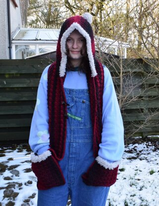 I love scoodies, the simplicity of a hat, scarf and gloves combined. They are fun to wear and nice and cosy on a cold winters day. I wanted a scoodie that was warm but also a little luxurious so I added the fur trim, which I think finishes it off nicely and gives it a lovely winter wonderland feel.