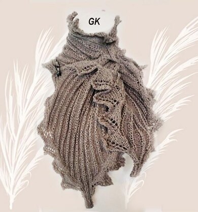 It is a linen scarf to use as an accessory item on chilly summer evenings. It was based on a stem combined with ruffles at the sides. The scarf is an amazing project knitted in two portions and finished with sewing. The directions are for the odd rows only on the even rows knit or purl as they appear, purl yarn overs on the Ruffle pattern, and knit/purl yarn overs as the Stem pattern range appears.