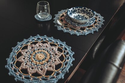 The Rula Placemat is a crochet placemat pattern made with bulky weight yarn that has a skill level of easy.