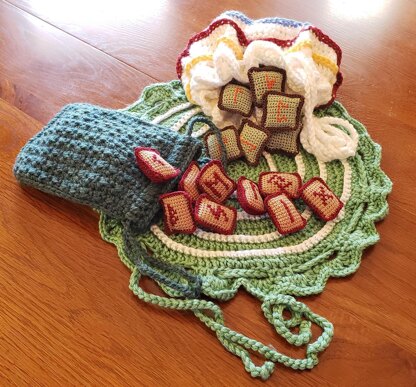 Rune Crochet - Practical Patterns for Psychic Divination - Creating and using the Runes of The Elder Futhark So much more than a pattern. This is a 65 page download that shows you how to open your inborn Psychic abilities while you create one of two rune sets, a rune bag, and / or a rune bag / spread cloth combo! Combine your awakened Psychic communication with the messages of the runes for truly personal and precise guidance from the Runes of the Elder Futhark. Includes The patterns for the runes will require size size 10 crochet thread and a 1.5 mm hook or a 2.5mm hook. The patterns for the bags will require 4py ww yarn and a 5.5mm hook AND includes techniques for psychic opening AND includes the traditional messages of the 24 (25) Runes