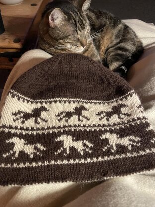 A reversible beanie in double knit with running horses :)
