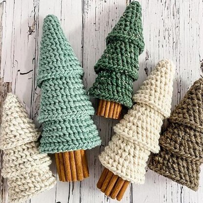Crochet these rustic and cozy farmhouse-tiered trees for your Holiday decor. The pattern works up quickly in super bulky weight yarn. Cinnamon Stick base provides a delightful and festive aroma. Makes a perfect gift or item to sell at markets. Easily make a whole set in a day. Video tutorial on YouTube included.