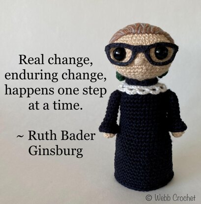 Ruth Bader Ginsburg was a US Supreme Court Justice who served on the Supreme Court for 27 years until her death in 2020. Throughout her career, she fought for gender equality, women’s rights, the right to vote, and was the founder of the ACLU Women’s Rights Project. This pattern of RBG, as well as my patterns of Harriet Tubman and Ida B Wells, has been created to honor those who have fought for human rights and voting rights.
