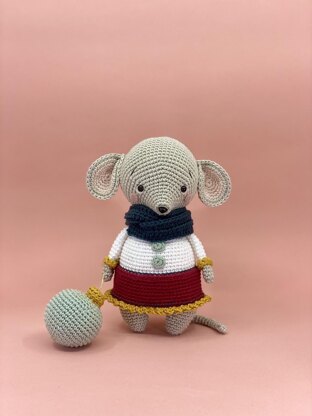 Ruth is made with a 2.5 mm crochet hook, and she is 18 cm / 7 inches tall. Her measurements will change depending on the crochet hook and yarn you use. I used seven colors of Schachenmayr Catania to make this mouse. The pattern is eight pages long and contains step by step instructions and lots of detailed pictures to help you along making the doll. I would recommend it for advanced beginners with a little experience in amigurumi. The instructions are detailed and easy to follow if you know the basic stitches and techniques used to make amigurumi. Also included is a materials list and notes and tips to help you finish your doll.