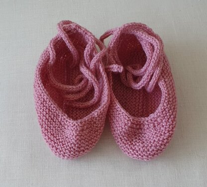 Ballet slippers knitted in garter stitch with an i-cord ankle tie.
