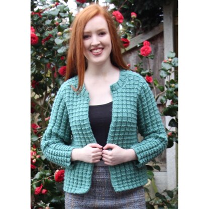 This original designer knitwear pattern from Award Winning Designer Marianne Henio is for the Saddle Jacket. Knitted in a chunky yarn, this is knitted in a squared stitch pattern throughout using knit and purl stitches. A smart saddle shoulder jacket for a smart occasion.