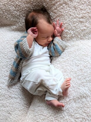 Crafted with gentle, baby-friendly yarn, the cardigan features delicate stripes that add a playful touch while ensuring a cozy fit for your little bundle of joy. Designed for easy dressing, it slips on effortlessly, making it perfect for layering and a breeze for busy parents.