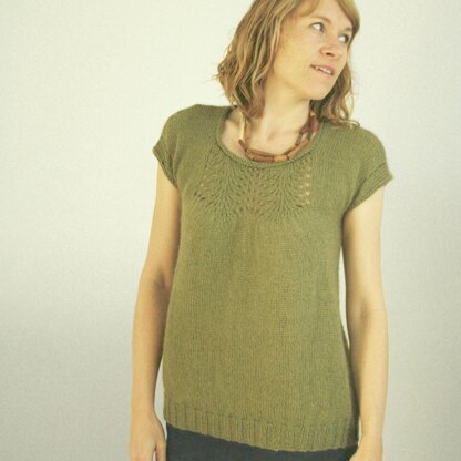 December 2016: The Sage Remedy Top has been re-released. The following updates have been made to the original pattern: Front neckline has been lowered by 4 rows; Lace pattern has been made symmetrical with ssk and k2tog; A total of 12 sts less fullness through body; 16 rows longer; A new yarn has been used; The armhole grading has been improved; The size grading uses Craft Yarn Council Standard Measurements.