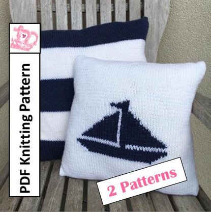 These two nautical pillow covers use the same yarn weight and needle sizes and are ideal for a beginner knitter ready to start working with more than one color, or the experienced knitter looking for a quick and easy project.