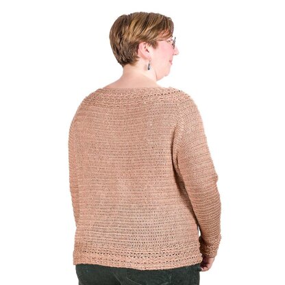 Salomé est pull proposé en manche 3/4 ou longue. Son encolure ainsi que l’extrémité des manches et le bas du pull sont réalisés avec un joli motif de torsade.