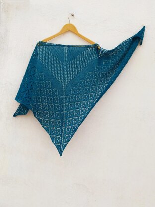 The Salvia Shawl is a shawl with a triangular construction, with two phases of stockinette stitch and two phases of lace.