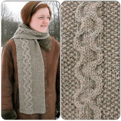 Sand and Pebbles Scarf would be a wonderful addition to any cold weather wardrobe. The single, offset cable is reminiscent of the gentle lines left in the sand by the waves lapping the shore. The seed stitch’s nubbly texture brings to mind the tiny pebbles found at the water’s edge. Simple and uncluttered in design and easy to knit, it would be suitable for both men and women.