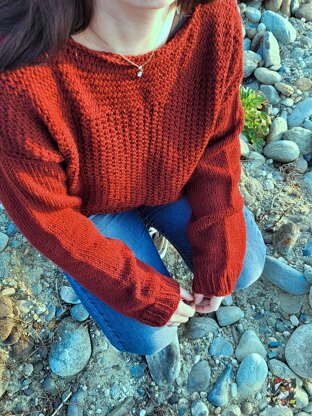 The Sand & Wine sweater is a very soft and comfortable pullover. The front and back are knitted flat equally, while the sleeves are knitted in the round. All parts are then sewn together.