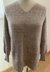Sandy is a V neck sweater with sand st on the back body. Front body and the sleeves are worked with the stockinette st. Worked from the top down. Worked flat until the front V neck is connected, then worked in the round for the rest of the body. For the body and sleeve hemline, K1, p1 ribbing is used.