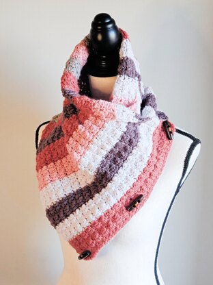 A cowl for today’s fashion is just a loosely worn scarf that can be a continuous circle or it can be buttoned around the neck. There are many patterns and styles that you can choose from. The Santa Fe Button Cowl is great for advanced beginners that are looking to do a little colorwork.