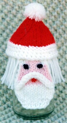 Goes with our other jar toppers, for a perfect Holiday setting! Fill pint size canning jars with treats, candies, small cookies, even doggie treats! Knit up the Santa topper and put on top. You have a great gift that can be used again and again! Uses worsted weight yarns, knitting needles, US # 8.