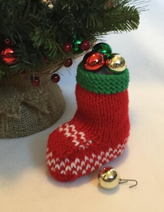A European style boot, measuring about 5 by 5. Great to fill with candy, mints, or small toys. Make two to fit toddlers as slippers! The pattern is fairly easy, so you should be able to knit up lots of these for Holiday gift giving! Uses worsted weight yarns, knitting needles, US # 7.