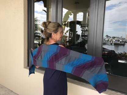 Use two or three colors of fingering weight yarns for a wonky shaped wrap. Use double increases and decreases to create a jagged edge at both ends and a little smocking in the middle and you’ll have a wrap to toss around yourself all summer. The colors merge using simple slipped stitches to create a mosaic color change. Mosaic is defined as using only one color per row so no need to worry about carrying yarns along.