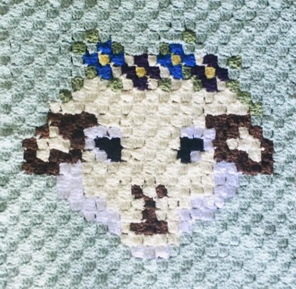 This adorable C2C square pattern can be used on it’s own to make a throw pillow, tote bag, baby lovey, small pet blanket, wall hanging or you can combine other compatible squares to make a blanket as pictured above.