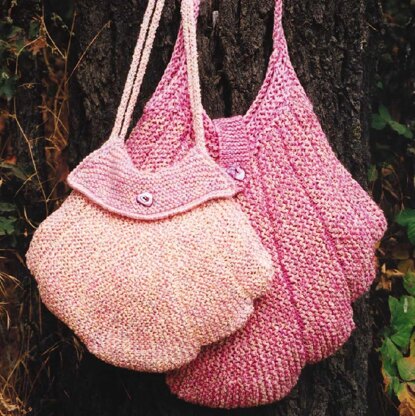 Materials: Purse: 240 yds. textured double knitting weight yarn (A); 300 yds. variegated light worsted weight yarn (B); Knitting needles sizes 5 & 9; 1 button Bag: 350 yds. textured double knitting weight yarn (A); 435 yds. variegated light worsted weight yarn (B); 515 yds. light worsted weight yarn (C) Knitting needles sizes 8 & 11; 1 button Gauge: Purse: 15 sts., 24 rows = 4" in garter st. on larger needles Bag: 12 sts., 15 rows = 4" in garter st. on larger needles