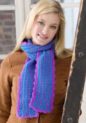 Scalloped Edge Scarf in Red Heart Shimmer Solids - LW2686