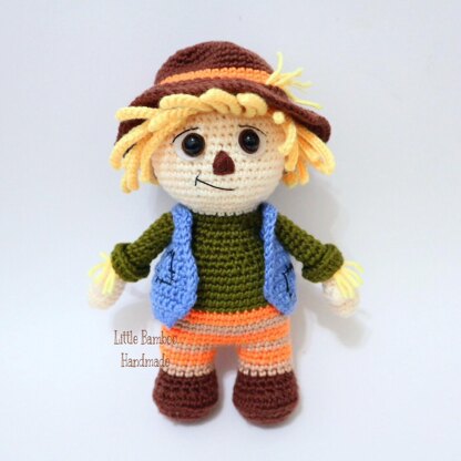Meet the Scarecrow, a new member of Halloween monsters. This little guy is too cute that he might not scare away any crows! Suggested Materials & Tools: Soft wire cotton/fiberfill 4 ply acrylic/ milk cotton yarn 10mm size black eye ( 2 ) 2mm crochet hook White and brown felt