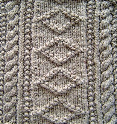 Fishermen have worn sweaters decorated with simple knit and purl designs for hundreds of years. The designs on this square come from traditional patterns found among the Scottish fishing fleet.