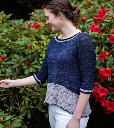 The Scottish Highlands Top is inspired by ancient Abbey ruins in Scotland and is worked top-down, seamless, and in the round. It uses some of the same design elements as the Scottish Highlands Shawl, added slight A-line shaping, and an angled hemline for a casual and flattering fit.