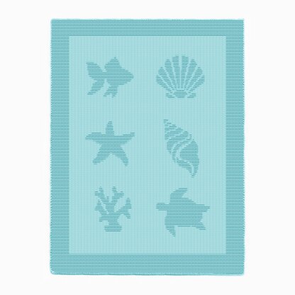 Knit something special for your little one with this Sea baby throw blanket. This beginner-friendly pattern uses only knit and purl stitches to create a textured coastal motifs of Scallop and conch shells, turtle, coral, fish and starfish, with no colorwork or charts required. The design is worked in reverse stockinette and garter stitch on a smooth stockinette background, framed by a neat garter border. This method, known as textured or knit-and-purl knitting, adds depth and detail using just stitch direction and placement. It’s perfect for exploring how texture alone can shape visual designs in fabric. No advanced techniques are needed, just focus and accurate stitch counting. Includes clear row-by-row instructions. Finished size depends on yarn and needles: Sport (5 ply) about 80×100 cm (33×40 inches) ~700 g, DK or worsted about 100×120 cm (40×47 inches) ~800–850 g, Aran about 115×140 cm (45×55 inches) ~1400–1500 g. Gauge: Sport 22×32, DK 18×26, Aran 16×23. Language: English. PDF do