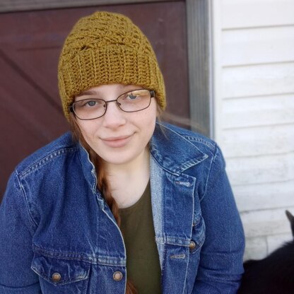is an easy construction working from the bottom up creating a double thickness brim for extra warmth around the ears and creating a beautiful stitch pattern that always takes me back to being in Florida imagining I'm standing on that sandy beach listening to the ocean wave as they crash.