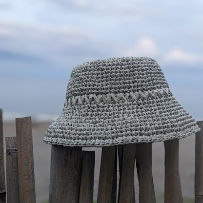 Sea Reflections is an easy crochet bucket hat, with a zigzag stitch pattern around the crown and edge of brim, available in adult and child size.