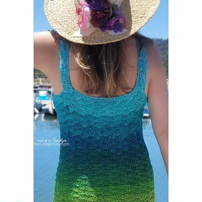 This tank top can be worn year round, featuring a shell stitch combination without a seam. Made bottom up, it's easy to adjust the length.