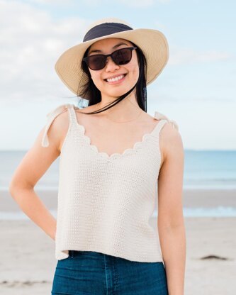 The Seascape Scallop Tank Top is summer in a top! The breezy drape and scallop edging remind me of long beach days basking under the golden New Zealand sun! The body of the top is made entirely of single crochets, so it’s perfect for mindless crocheting while you listen to waves crashing on the beach, as a road trip project or while watching TV.