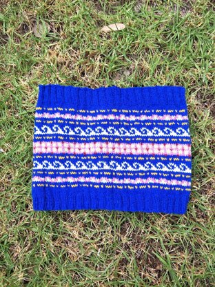 This cowl, worked in 4 ply / fingering weight yarn, is packed with colour in easy stranded motifs.