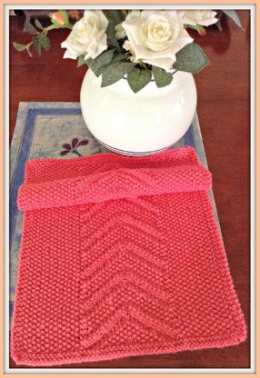 This reversible knit towel measures 28x43cm (11x17in) and is soft with a nice nubby texture from the seed or moss stitch. The chevron pattern looks great on both sides.