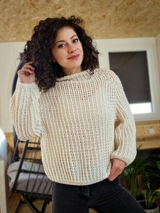 The yoke is worked in 2 sections: the first one, increasing only the front and back panel, and the second one, increasing the sleeves and the body. After finishing the yoke, the piece is split into sleeves and a body. The three parts are worked individually until the desired length. The sweater has positive ease of about 18cm around the Bust Circumference.