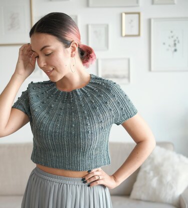 Senecio is worked from the top down seamlessly with the round yoke. The neck is shaped with short rows. This design features slipped and twisted stitches, small biased stripes, Japanese wrapped stitches and two kinds of nupps. The main stitch pattern is easy to memorize and entertaining to knit. Instructions are both charted and written.