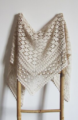 • A gorgeous, delicate and feminine wrap. It will be a perfect accessory for a special occassion. Shawl has a shape of a wide triangle and is worked bottom-up with a border added top-down after the bodice is complete.