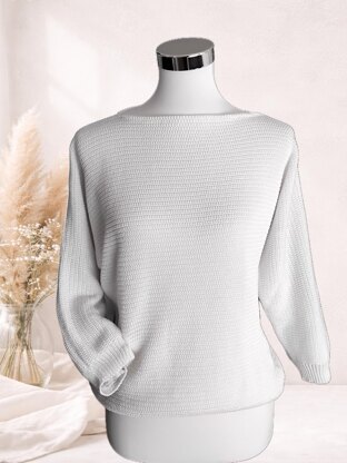 Dieser elegante Strickpullover in zeitlosem Weiß überzeugt durch seine schlichte, feminine Ausstrahlung und hohen Tragekomfort. Gefertigt aus einer Baumwoll-Viskose-Mischung, vereint das Modell die atmungsaktiven Eigenschaften der Baumwolle mit dem dezenten Glanz und dem fließenden Fall der Viskose. Besonders charakteristisch ist die quergestrickte Verarbeitung mit 3/4-Ärmeln. Dadurch entsteht ein horizontaler Maschenverlauf, der dem Modell eine moderne Optik verleiht.